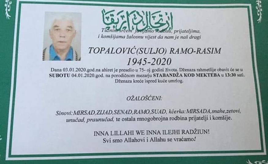 Na Ahiret preselio Topalović (Suljo) Ramo-Rasim