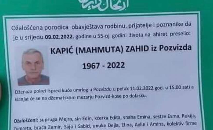 Na ahiret preselio Kapić (Mahmuta) Zahid