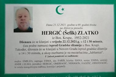 Na Ahiret preselila Hirkić (rođ. Zenković) Emina-Hasanovca