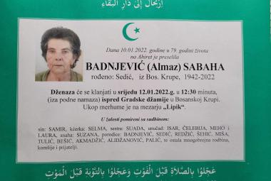 Na ahiret preselila Badnjević (Almaz) Sabaha