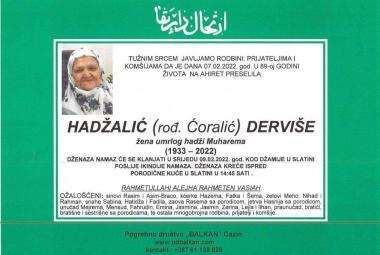 Na ahiret preselila Hadžalić (rođ. Ćoralić) Derviše