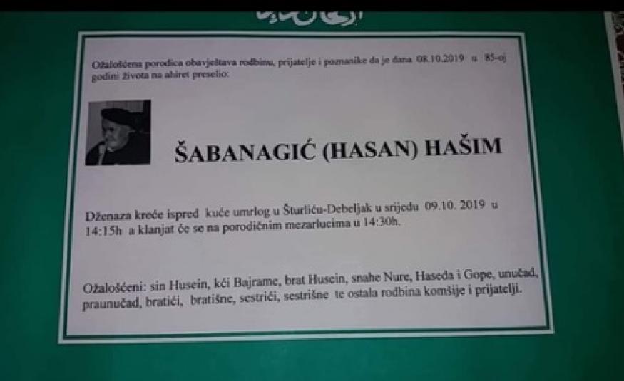 Na Ahiret preselio Šabanagić (Hasan) Hašim