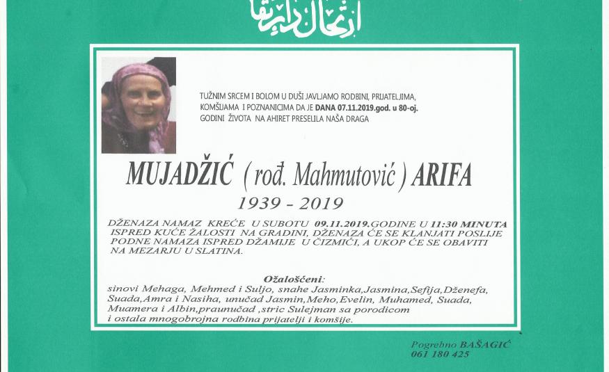 Na Ahiret preselila Mujadžić (rođ. Mahmutović) Arifa