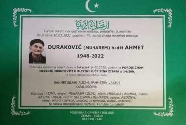 Na ahiret preselio Duraković (Muharem) hadži Ahmet