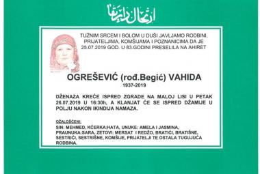 Na Ahiret preselila Ogrešević (Begić) Vahida