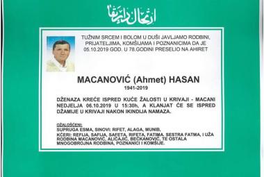 Na Ahiret preselio Macanović (Ahmet) Hasan
