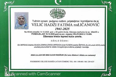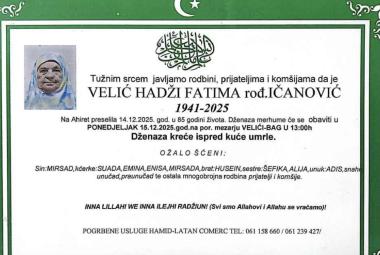 Na Ahiret preselila Velić Hadži Fatima, rođ. Ićanović