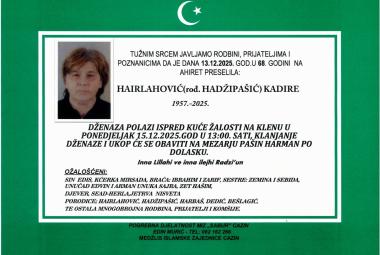 Na Ahiret preselila HAIRLAHOVIĆ (rođ. HADŽIPAŠIĆ) KADIRE