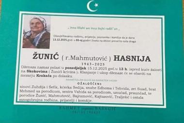 Na Ahiret preselila ŽUNIĆ (r. Mahmutović) HASNIJA