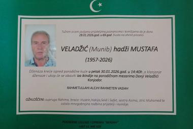 Na Ahiret preselio VELADŽIĆ (Munib) hadži MUSTAFA