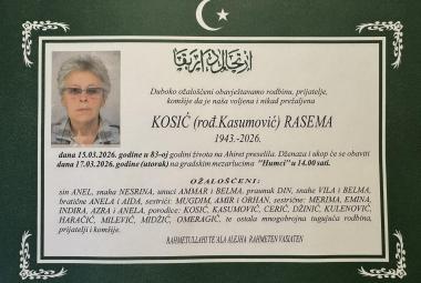 Na Ahiret preselila KOSIĆ (rođ. Kasumović) RASEMA