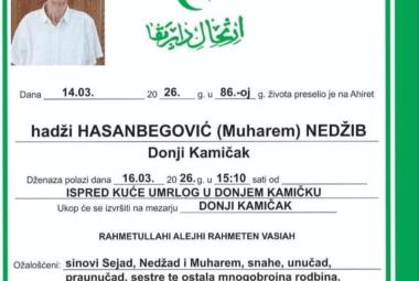 Na Ahiret preselio hadži HASANBEGOVIĆ (Muharem) NEDŽIB