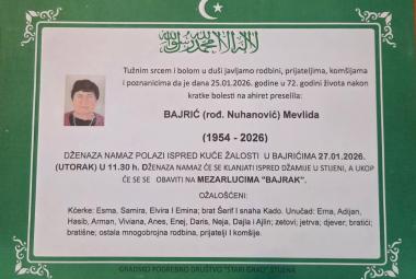 Na Ahiret preselila Bajrić (rođ. Nuhanović) Mevlida