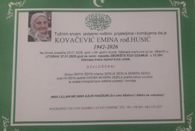 Na Ahiret preselila KOVAČEVIĆ EMINA rođ. HUSIĆ