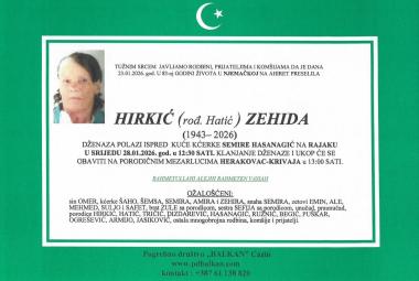 Na Ahiret preselila Hirkić (rođ. Hatić) Zehida