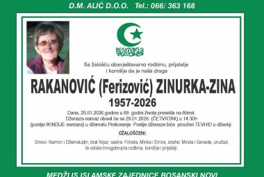 Na Ahiret preselila Rakanović (Ferizović) Zinurka – Zina