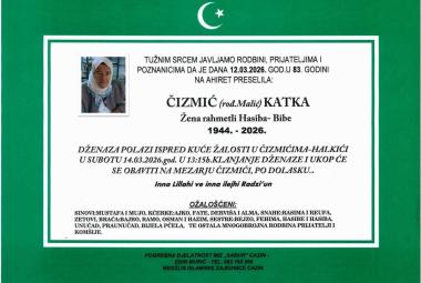 Na Ahiret preselila Čizmić (rođ. Malić) Katka