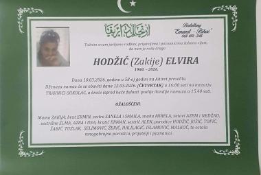 Na Ahiret preselila HODŽIĆ (Zakije) ELVIRA
