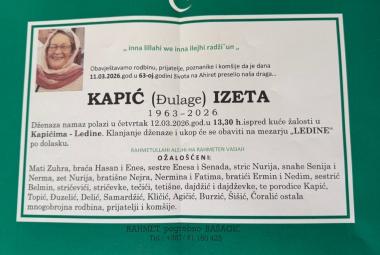 Na Ahiret preselila Kapić (Đulage) Izeta