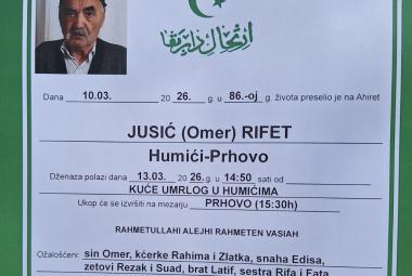 Na Ahiret preselio JUSIĆ (Omer) RIFET