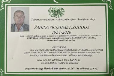 Na Ahiret preselio ŠAHINOVIĆ (AHMET) ZUHDIJA