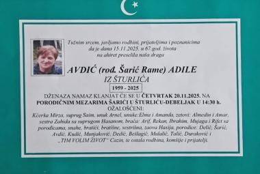 Na Ahiret preselila Avdić (rođ. Šarić Rame) Adile