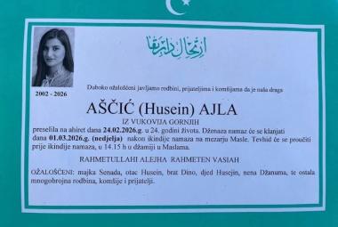 Tuga. U 24. godini života na Ahiret preselila Ajla Aščić