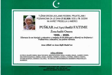 Na Ahiret preselila Puškar (rođ. Topić) hadži Fatime