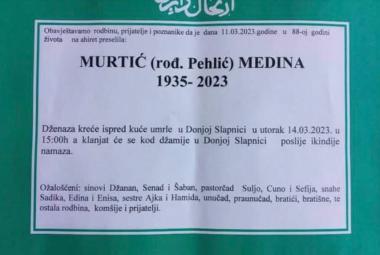 Na Ahiret preselila Murtić (rođ. Pehlić) Medina