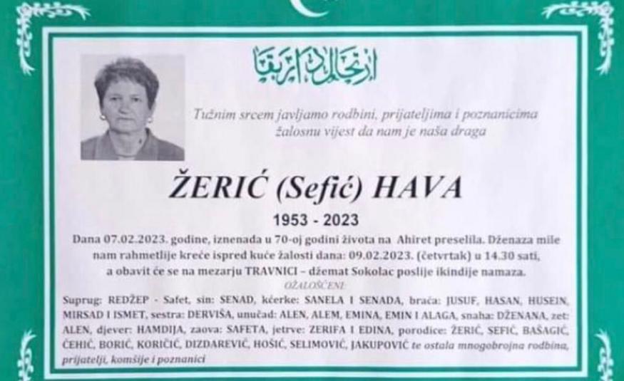 Na Ahiret preselila Jakupović (rođ.Pozderac) Nisveta