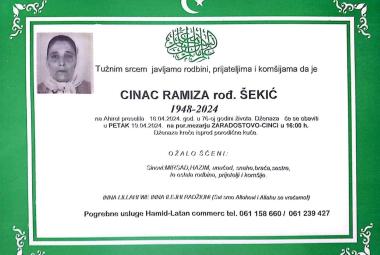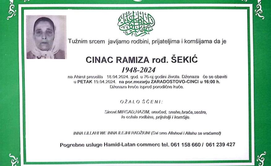 Na Ahiret preselila Cinac Ramiza rođ. Šekić
