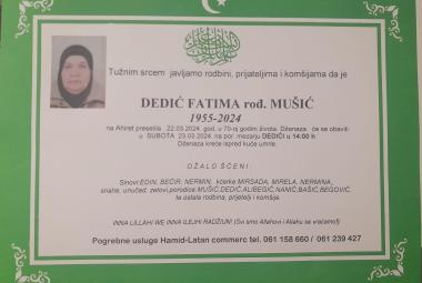 Na Ahiret preselila Dedić (rođ. Mušić) Fatima