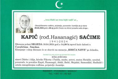 Na Ahiret preselila Kapić (r.Hasanagić) Saćime