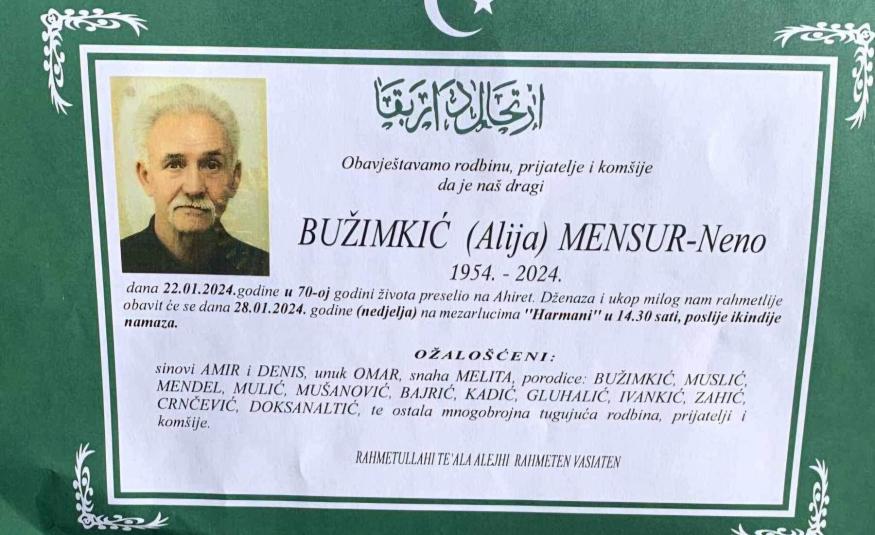 Na Ahiret preselio Bužimkić (Alija) Mensur-Neno