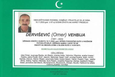 Na Ahiret preselio Dervišević (Omer) Vehbija