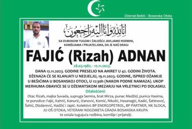 Na Ahiret preselio Fajić (Rizah) Adnan