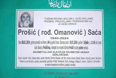 Na Ahiret preselila Prošić (rođ. Omanović) Saća