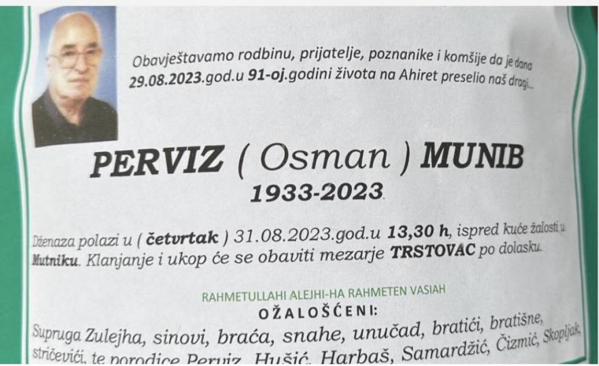 Na Ahiret preselio Bajrektarević (Ahmet - Jojin) Ferid zvani Brkan