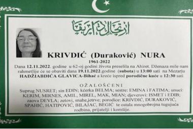 Na Ahiret preselila Krivdić (Duraković) Nura