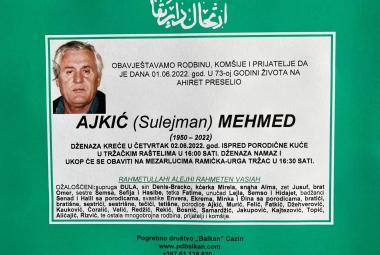 Na Ahiret preselio Ajkić (Sulejman) Mehmed
