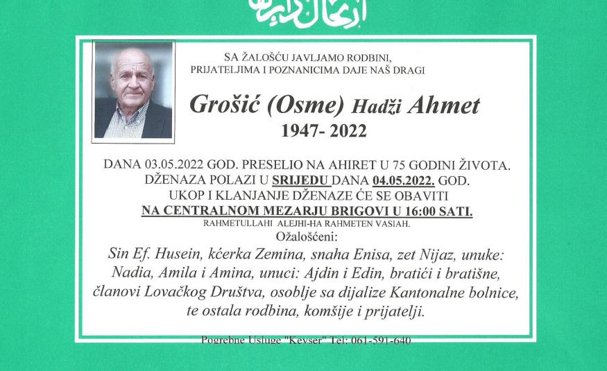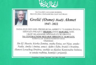 Na Ahiret preselio Grošić (Osme) Hadži Ahmet