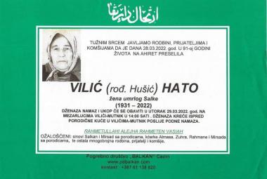 Na Ahiret preselila Vilić (rođ. Hušić) Hato