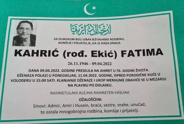 Na Ahiret preselila Kahrić (rođ. Ekić) Fatima