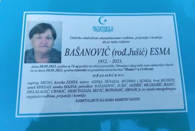 Na Ahiret preselila Bašanović (rođ. Jušić) Esma