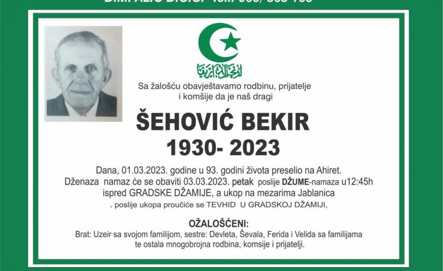 Na Ahiret preselio Muharemović (Muharem) Sulejman