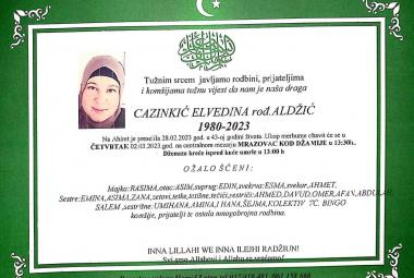 Na Ahiret preselila Cazinkić Elvedina rođ. Aldžić