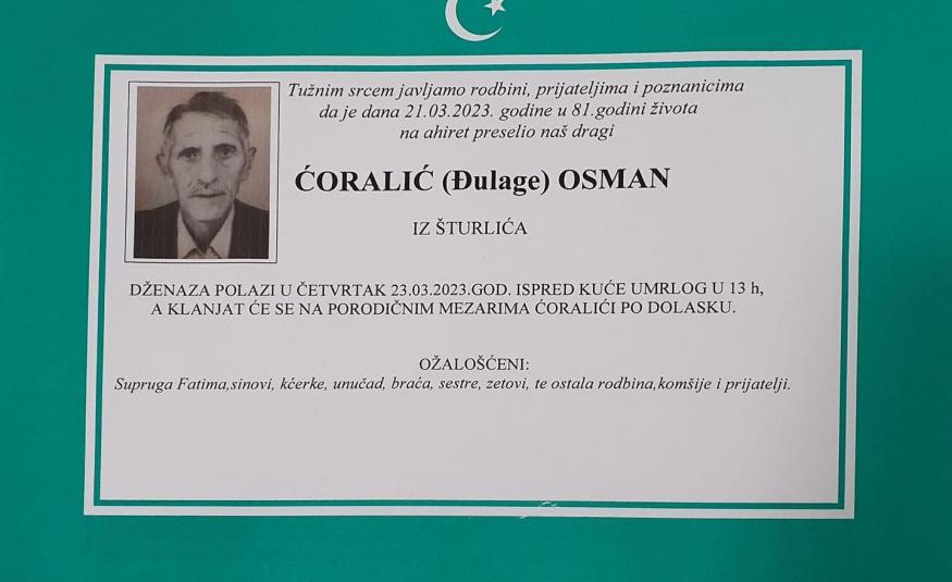 Na Ahiret preselio Ćoralić (Đulage) Osman