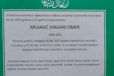 Na Ahiret preselio Mujakić (Hasan) Omer