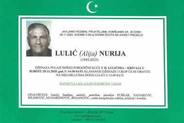 Na ahiret preselio LULIĆ(Alija)NURIJA