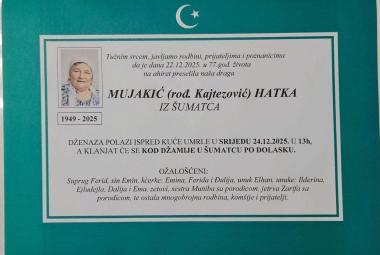Na ahiret preselila MUJAKIĆ (rođ. Kajtezović) HATKA